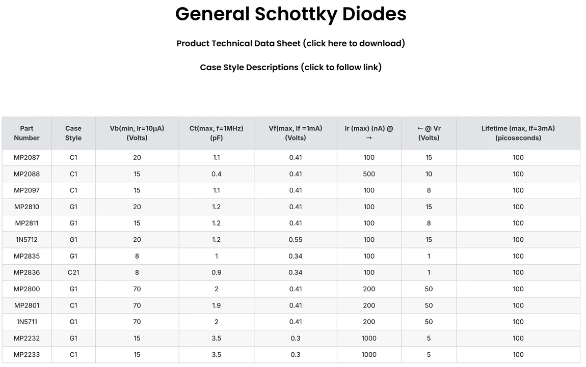 MP2 Schotlky Diodes