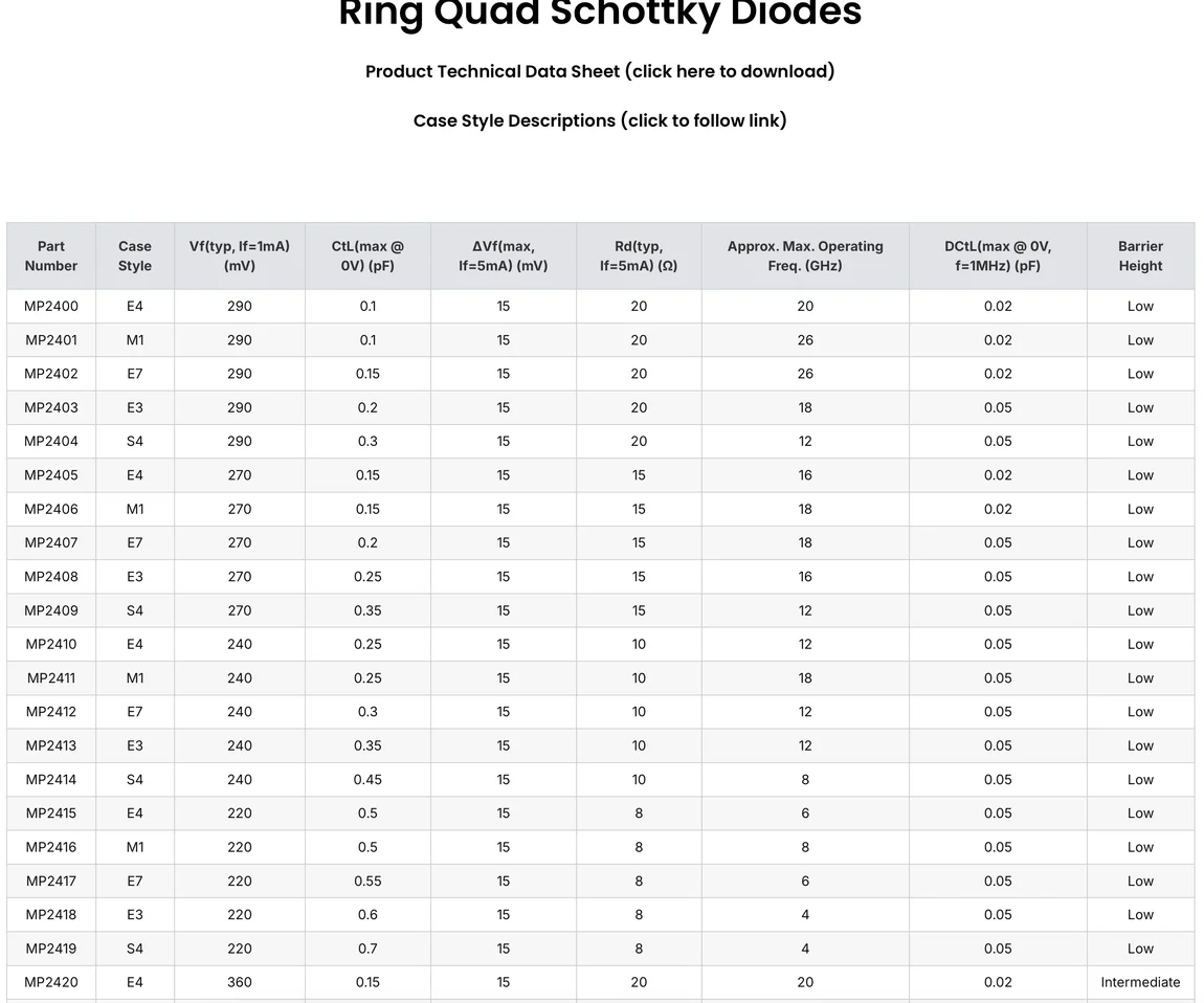 MP2 Ring Quad Schottky Diodes - LTEQ MICROWAVE