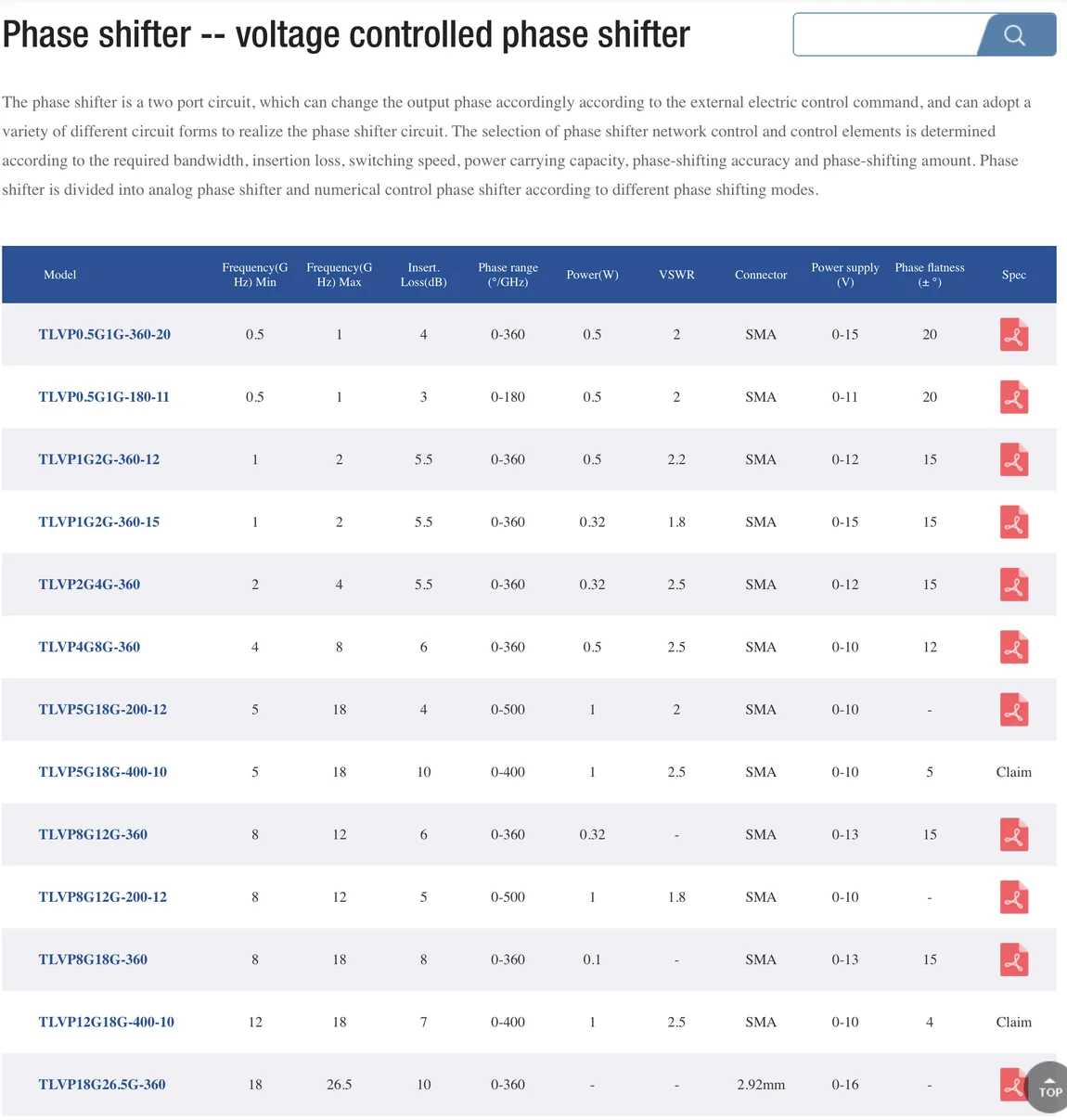 voltage controlled phase shifter - LTEQ MICROWAVE